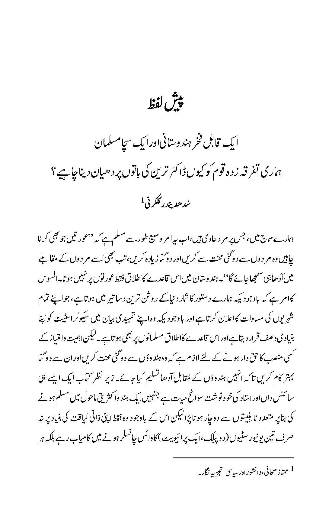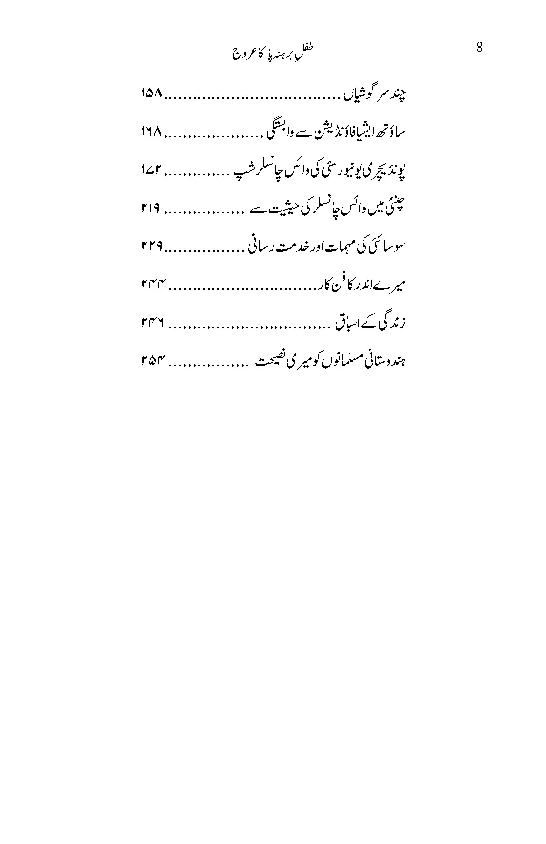”طفل ِبرہنہ پا کا عروج“ ان کی دلچسپ آپ بیتی ہے جو ان کے ۷۲ ؍سال کے تجربات اور یاد داشتوں کا نچوڑ ہے۔ اس کا لب لباب یہ ہے کہ اگر انسان کا عزم راسخ ہو اور وہ جدو جہد کرتا رہے تو شدید ترین مشکلات کے با وجود ترقی کی اعلی ترین منزلیں طے کر سکتا ہے۔ اس کتاب میں انہوں نے اپنی قوم کو ایک خاص پیغام دیا ہے: رجعت پسند کٹر پنتھی گروہوں کا یہ دعویٰ کہ وہ اکثریت کے نمائندے ہیں ایک مغالطہ ہے۔ اکثریت نہ متعصب ہے، نہ غیر روادار، نہ کٹر پنتھی ، نہ منافرت پسند۔ امن و آشتی کا راستہ یہ ہے کہ اکثریت سے ربط و ضبط اور میل ملاپ بڑھایا جائے اور ان کے ساتھ مل کر کام کیا جائے۔